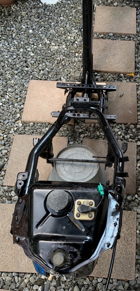 2001年に購入して途中ずっと乗らずに放置していたグランドアクシスでしたが久々にオートバイに乗ってみたい衝動に駆られレストアに挑戦してみた記録です。2021年6月から週末の休みを少しづつ使って組み立ての時の参考に写真を撮りながら分解していきフレームだけになったのが8月でした。 今回のレストアでは清掃と消耗部品や劣化部品(ゴム関係)は部品入手可能なものは可能な限り交換していくことにしました。 今回より不定期でレストアしたグランドアクシスでのツーリングと過去に遡ったレストアの紹介をしていきたいと思っています。 ワードプレスも使いこなせるようになりたいので頑張っていきたいと思います。 この後フレームと燃料タンクは錆落としを入念に行い艶消しブラックで塗装しました。(一液ウレタン塗料を利用)